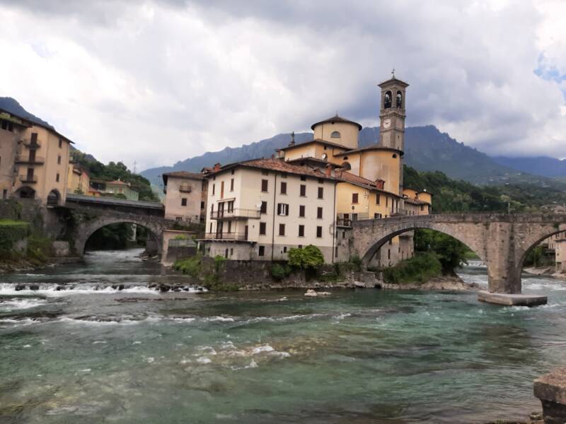 Dans l'après-midi nous partons vers le lac de Côme, mais nous faisons un détour pour aller jusqu'à San Giovanni Blanco, charmant village traversé par la rivière Brembo et proche de San Pellegrino, connu pour son eau gazeuse.