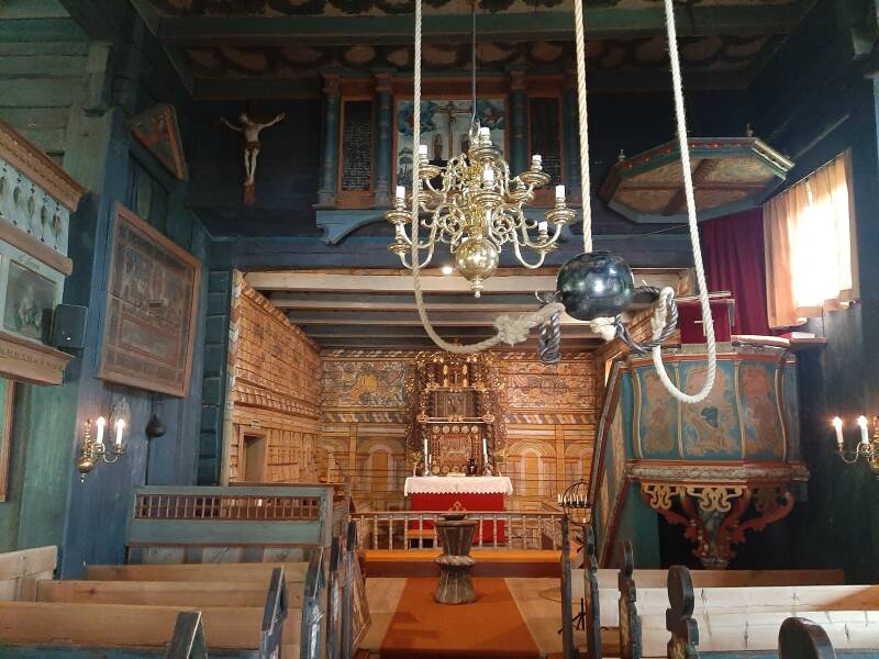Eglise en bois debout de Rollag (date de 1200) richement décoré